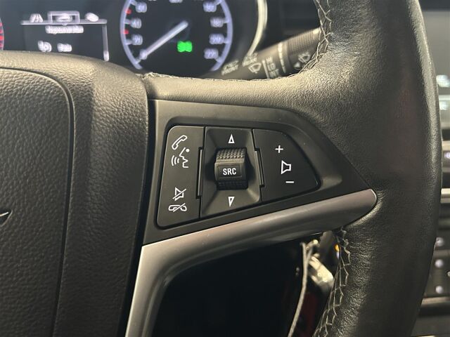 Nahkaverhottu kolmipuolainen ohjauspyörä, jossa radio/CD-soittimen kaukosäätö