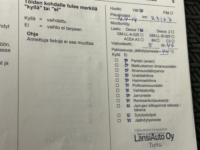 - Täydellinen huoltokirja