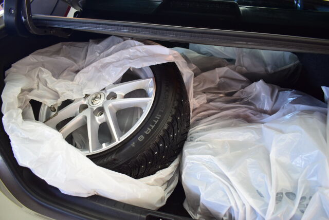 Nahkapäällysteinen ohjauspyörä ja vaihdekepin nuppi