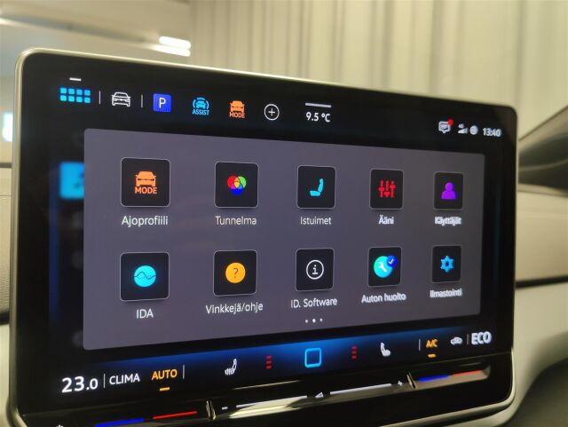 Navigointilaite Discover Pro. Kosketusnäyttö 12,9". Kaiuttimet edessä ja takana. Puheohjaus, toimii myös suomeksi.