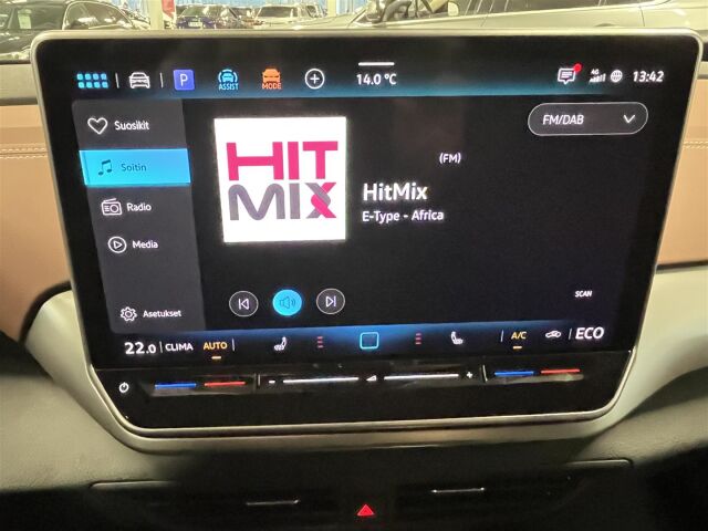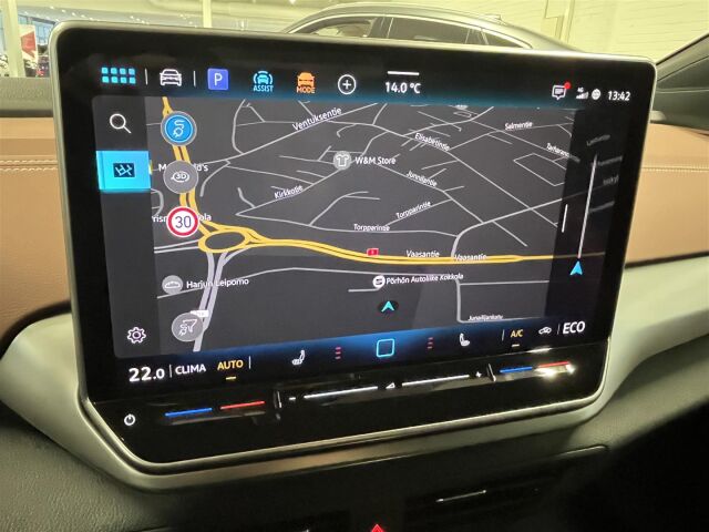 Navigointilaite Discover Pro. Kosketusnäyttö 12,9". Kaiuttimet edessä ja takana. Puheohjaus, toimii myös suomeksi.