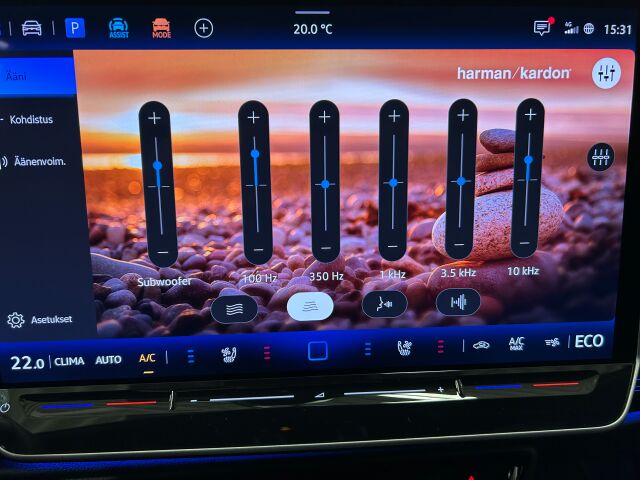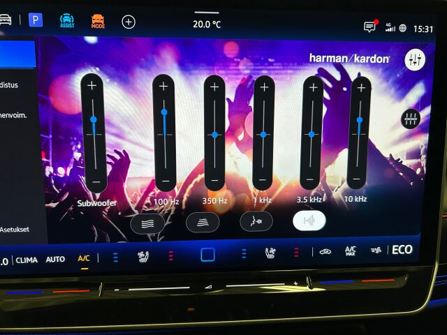 Harman/Kardon® -premium äänentoistojärjestelmä: 16-kanavainen 700 W vahvistin, 13+1 elementtiä, sisältäen subwooferin ja keskikaiuttimen, Neljä eri äänitilaa + taajuuskorjain