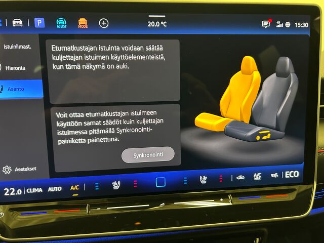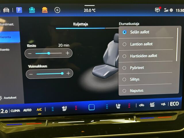 Automaatti-ilmastoidut sähkösäätöiset ergoActive-istuimet edessä muistitoiminnolla ja pneumaattisilla hierontatoiminnoilla (10+2 aluetta). Reisituen pituussäätö ja pneumaattinen sähkösäätöinen ristiseläntuki.