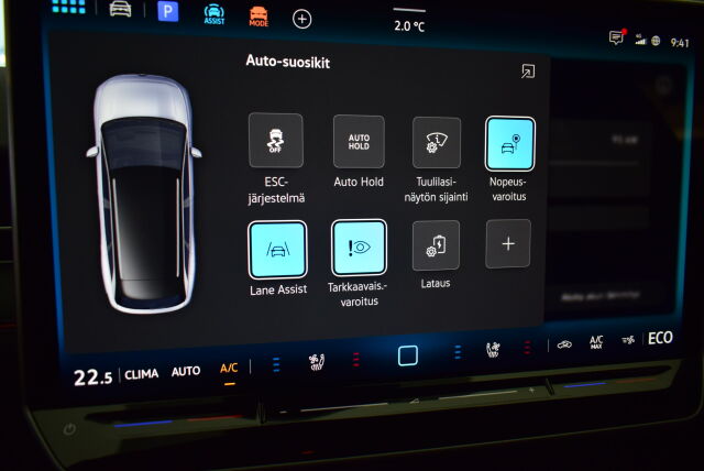 Automaatti-ilmastoidut sähkösäätöiset ergoActive-istuimet edessä muistitoiminnolla ja pneumaattisilla hierontatoiminnoilla (10+2 aluetta). Reisituen pituussäätö ja pneumaattinen sähkösäätöinen ristiseläntuki.