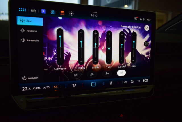 Harman/Kardon® -premium äänentoistojärjestelmä: 16-kanavainen 700 W vahvistin, 13+1 elementtiä, sisältäen subwooferin ja keskikaiuttimen, Neljä eri äänitilaa + taajuuskorjain
