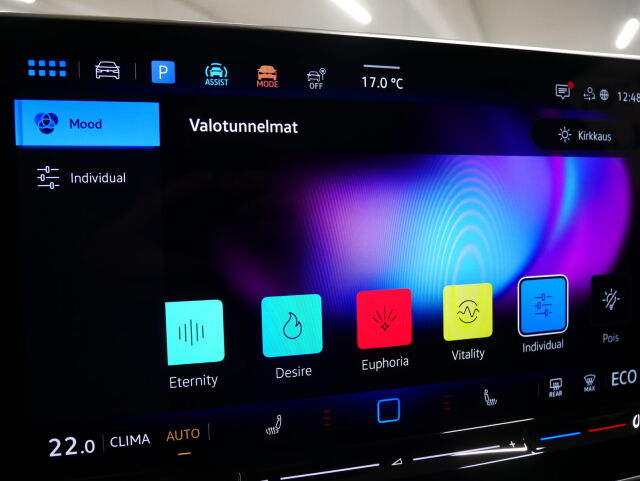 Ambiente-valaistus ohjaamossa (30 väriä), koristelistat kojelaudassa ja ovissa läpivalaistu