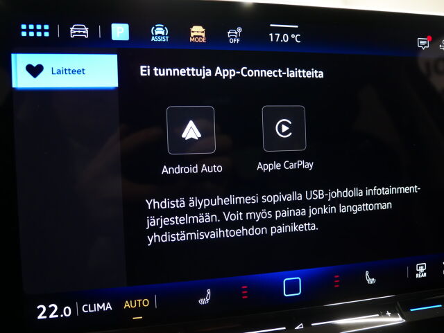 Langaton App-Connect älypuhelinliitäntä. Apple CarPlay - sekä Android Auto -laitteiden käyttö infotainment-järjestelmän näytöltä.